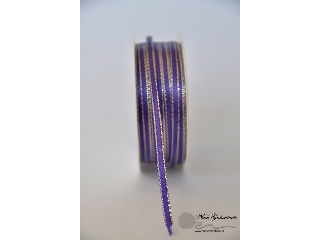 Vysoce kvalitní a elegantní jemně tkaná atlasová stuha oboulící /lesklé po obou stranách/, s rexorovým vláknem dodávající kovový vzhled. Stuha je poddajná a měkká s obšitými kraji - netřepí se. Cena je uvedena za 20 metrů. Český výrobek. Atlasová stuha fialová se zlatým okrajem.