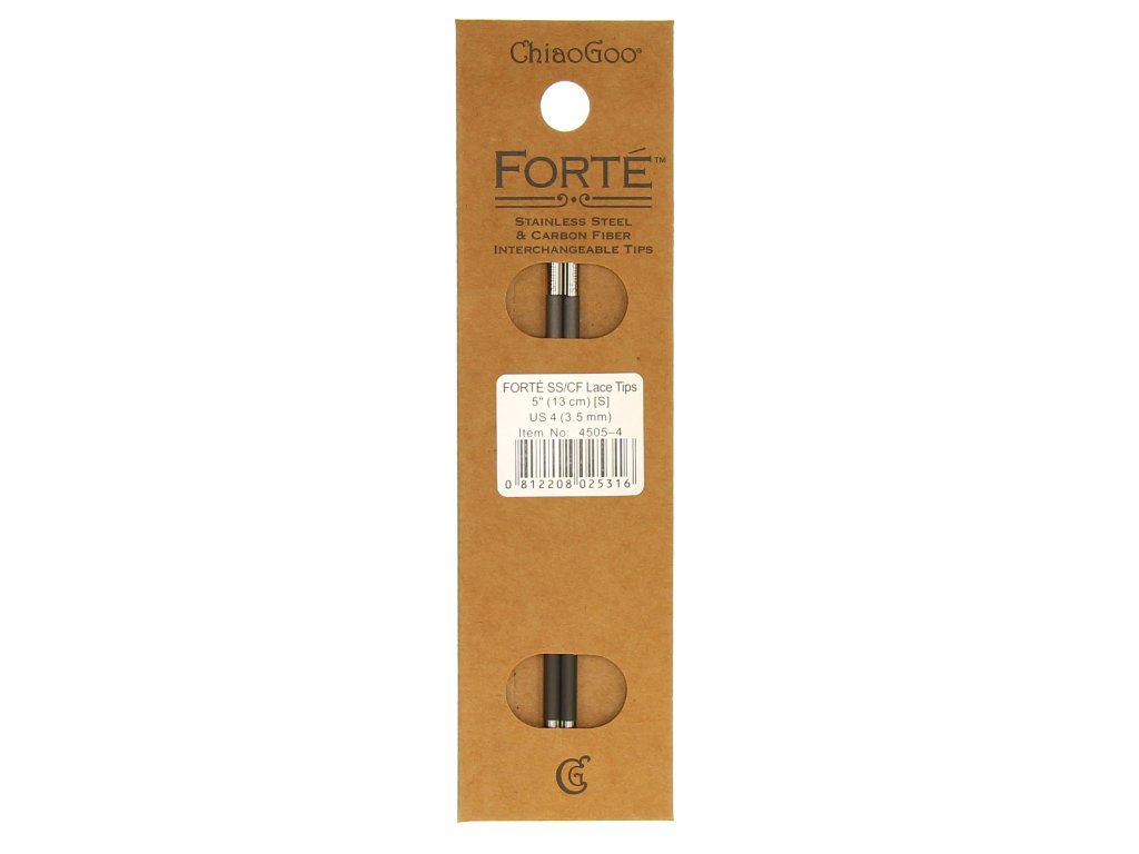 Jehlice ChiaoGoo Forté patří mezi nejluxusnější jehlice značky ChiaoGoo. Kombinují extrémně pevné karbonové tělo s precizní nerezovou špičkou, která zajišťuje hladký skluz příze a maximální přesnost při pletení.