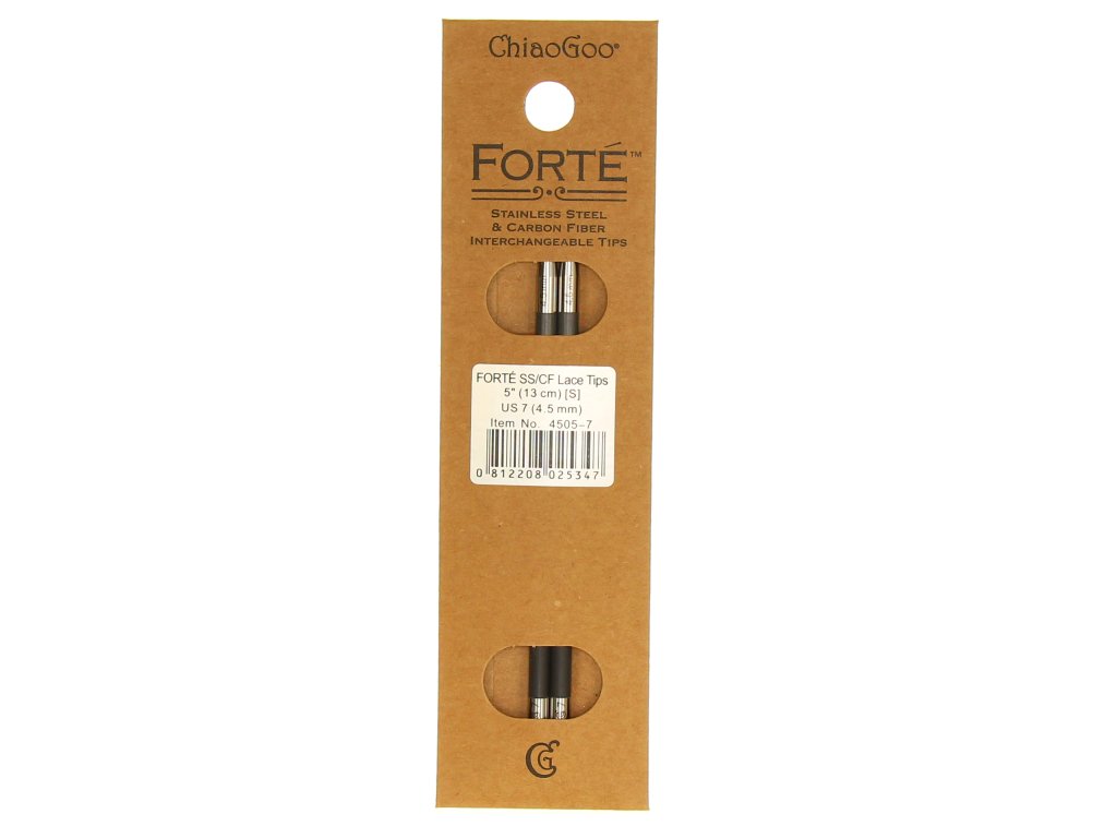 Jehlice ChiaoGoo Forté patří mezi nejluxusnější jehlice značky ChiaoGoo. Kombinují extrémně pevné karbonové tělo s precizní nerezovou špičkou, která zajišťuje hladký skluz příze a maximální přesnost při pletení.