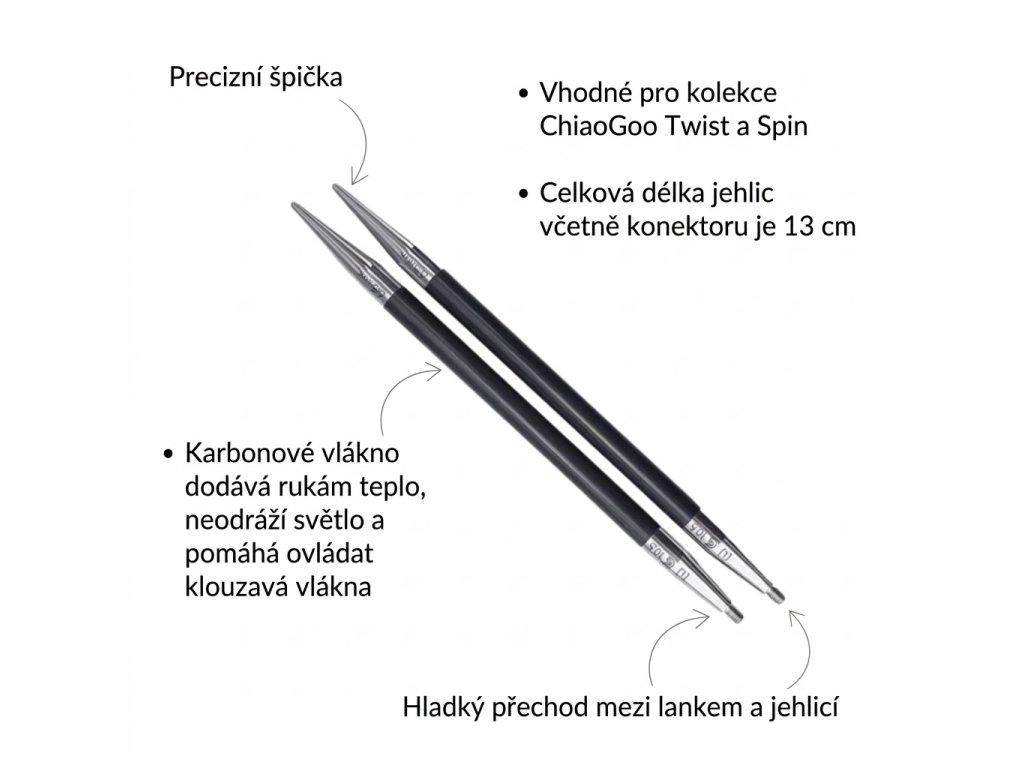 🧶 ChiaoGoo Forté 13 cm – luxusní karbonové jehlice pro výměnný systém