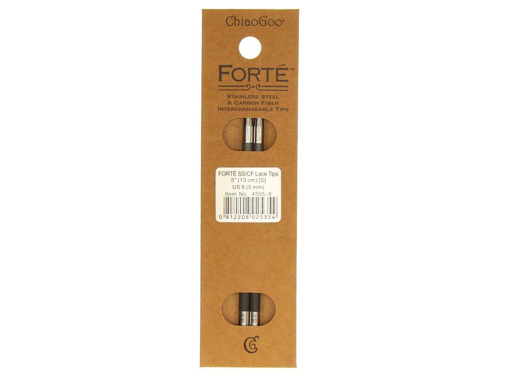 Jehlice ChiaoGoo Forté patří mezi nejluxusnější jehlice značky ChiaoGoo. Kombinují extrémně pevné karbonové tělo s precizní nerezovou špičkou, která zajišťuje hladký skluz příze a maximální přesnost při pletení.