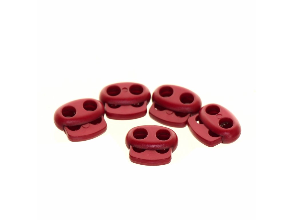 Plastová plochá malá brzdička se dvěma otvory o průměru 3 mm. Brzdičku využijete při šití i háčkování na stahování batohů, textilních sáčků, nebo při výrobě pyžamožroutů.