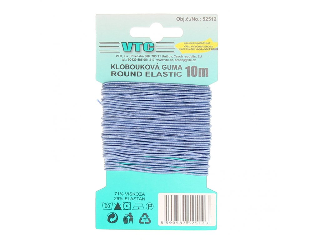 Klobouková guma světle modrá, s tažností 120-130%.