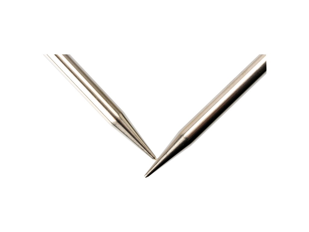 Jehlice mají dlouhé a velmi přesné lace špičky, které umožňují snadné nabírání ok i při složitějších vzorech. Saténově matný povrch jehlic zajišťuje plynulé klouzání příze bez zadrhávání.