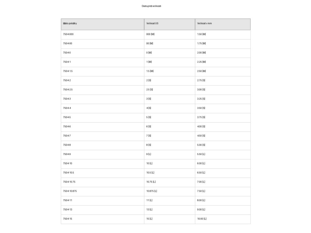 | Délka jehlic | Mini (M) | Small (S) | Large (L) |
