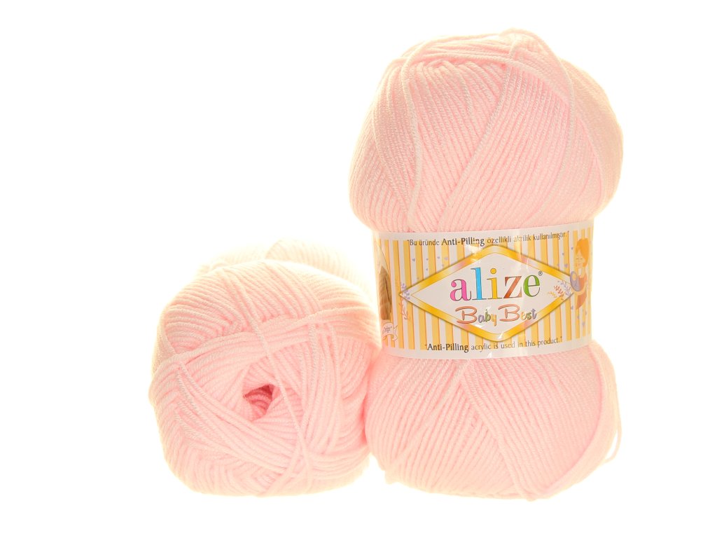 Alize Baby Best je velmi oblíbená dětská akrylová příze s bambusem, známá svou jemností, odolností a snadnou údržbou. Díky anti-pilling úpravě zůstává úplet hladký, bez žmolků a krásný i po opakovaném praní.