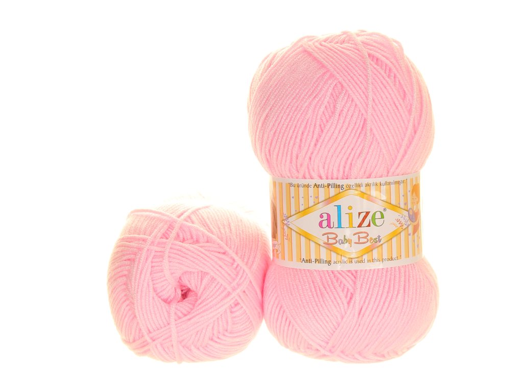 Alize Baby Best je velmi oblíbená dětská akrylová příze s bambusem, známá svou jemností, odolností a snadnou údržbou. Díky anti-pilling úpravě zůstává úplet hladký, bez žmolků a krásný i po opakovaném praní.