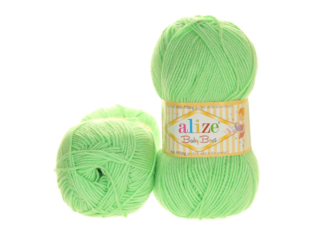 Alize Baby Best je velmi oblíbená dětská akrylová příze s bambusem, známá svou jemností, odolností a snadnou údržbou. Díky anti-pilling úpravě zůstává úplet hladký, bez žmolků a krásný i po opakovaném praní.