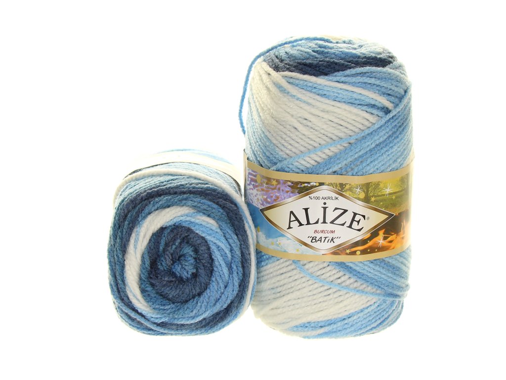 Středně silná batikovaná pletací příze Alize Burcum Batik 1899, je příjemná na dotek, nadýchaná, v barevných kombinacích které na úpletu vytváří pruhy.