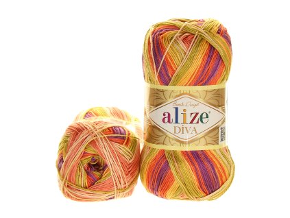 Alize Diva Batik je velmi jemná, mírně lesklá a pevná příze z mikrovlákna, která se po vyprání nežmolkuje. Díky batikovaným odstínům vytváří na úpletu originální barevné přechody. Je ideální pro jarní a letní modely a často se používá i na výrobu síťovek.