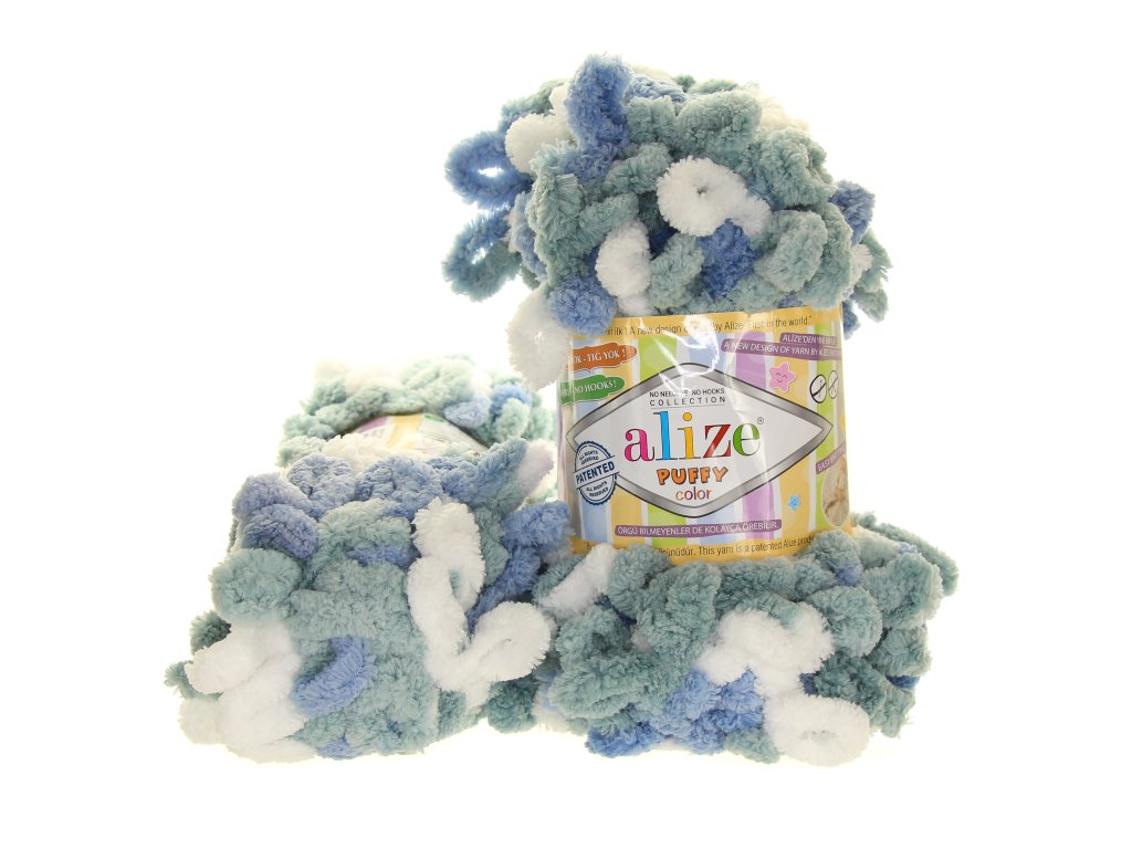 Alize Puffy je lehká, chlupatá a jemná polyesterová příze, která má oka na proplétání. Jedná se o relativně nový způsob kdy na práci s přízí nepoužíváte jehlice, nebo háček, ale používáte prsty. Na přiloženém videu se můžete podívat na ukázku jak snadno se s přízí pracuje. Na velkou deku 200x100cm spotřebujete cca 10 klubíček, na šálu Vám pak budou stačit dvě.