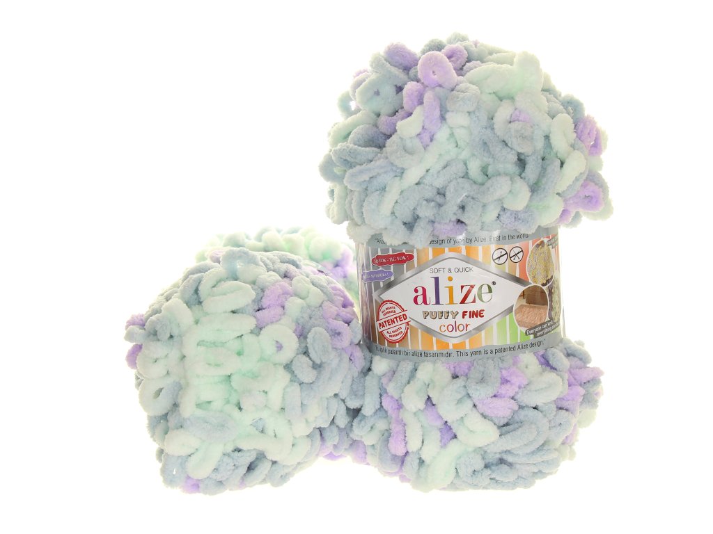 Alize Puffy Fine color je lehká, chlupatá a jemná polyesterová příze, která má oka na proplétání. Jedná se o relativně nový způsob kdy na práci s přízí nepoužíváte jehlice, nebo háček, ale používáte prsty. Na přiloženém videu se můžete podívat na ukázku jak snadno se s přízí pracuje. Ve srovnání s Puffy je slabší, očka jsou menší.Lze kombinovat s Puffy Fine.