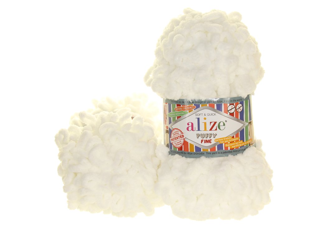 Alize Puffy Fine je lehká, chlupatá a jemná polyesterová příze, která má oka na proplétání. Jedná se o relativně nový způsob kdy na práci s přízí nepoužíváte jehlice, nebo háček, ale používáte prsty. Na přiloženém videu se můžete podívat na ukázku jak snadno se s přízí pracuje. Ve srovnání s Puffy je slabší, očka jsou menší.