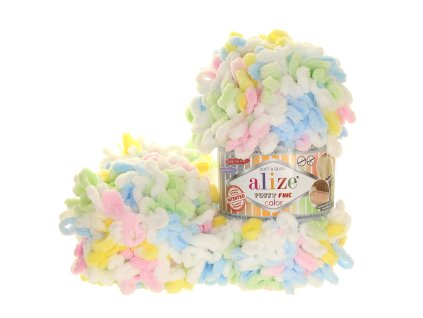 Alize Puffy Fine je lehká, chlupatá a jemná polyesterová příze, která má oka na proplétání. Jedná se o relativně nový způsob kdy na práci s přízí nepoužíváte jehlice, nebo háček, ale používáte prsty. Na přiloženém videu se můžete podívat na ukázku jak snadno se s přízí pracuje. Ve srovnání s Puffy je slabší, očka jsou menší.