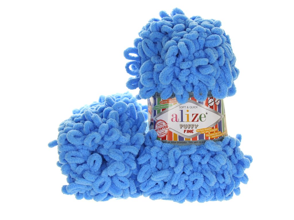Alize Puffy Fine je lehká, chlupatá a jemná polyesterová příze, která má oka na proplétání. Jedná se o relativně nový způsob kdy na práci s přízí nepoužíváte jehlice, nebo háček, ale používáte prsty. Na přiloženém videu se můžete podívat na ukázku jak snadno se s přízí pracuje. Ve srovnání s Puffy je slabší, očka jsou menší.