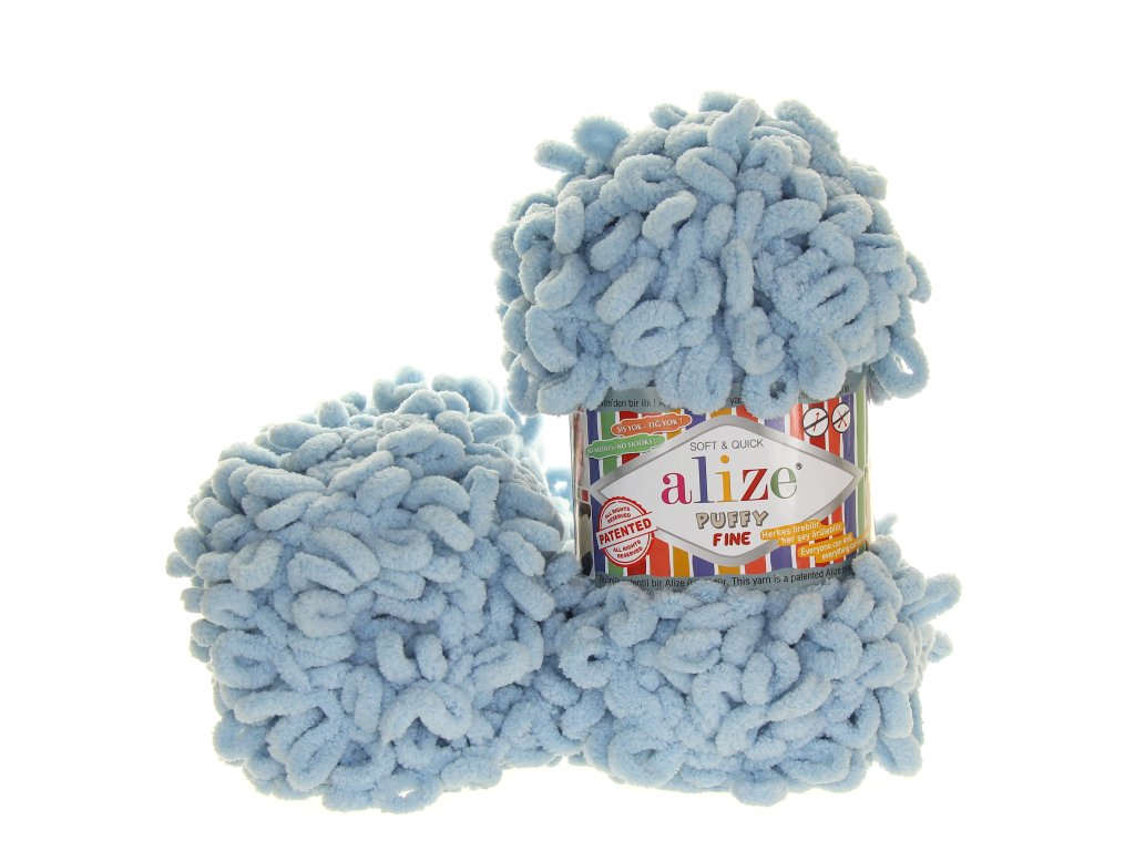 Alize Puffy Fine je lehká, chlupatá a jemná polyesterová příze, která má oka na proplétání. Jedná se o relativně nový způsob kdy na práci s přízí nepoužíváte jehlice, nebo háček, ale používáte prsty. Na přiloženém videu se můžete podívat na ukázku jak snadno se s přízí pracuje. Ve srovnání s Puffy je slabší, očka jsou menší.