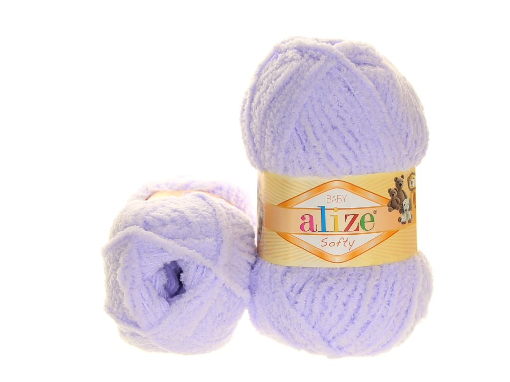 Hebká dětská příze Alize Softy s chlupem vhodná na dětské čepicky, svetříky, deky nebo pletené či háčkované hračky a podobně. Jemností je srovnatelná s přízi Doplhin baby, pouze slabší. Klubíčko je s návinem 115 metrů. Váha 50g.