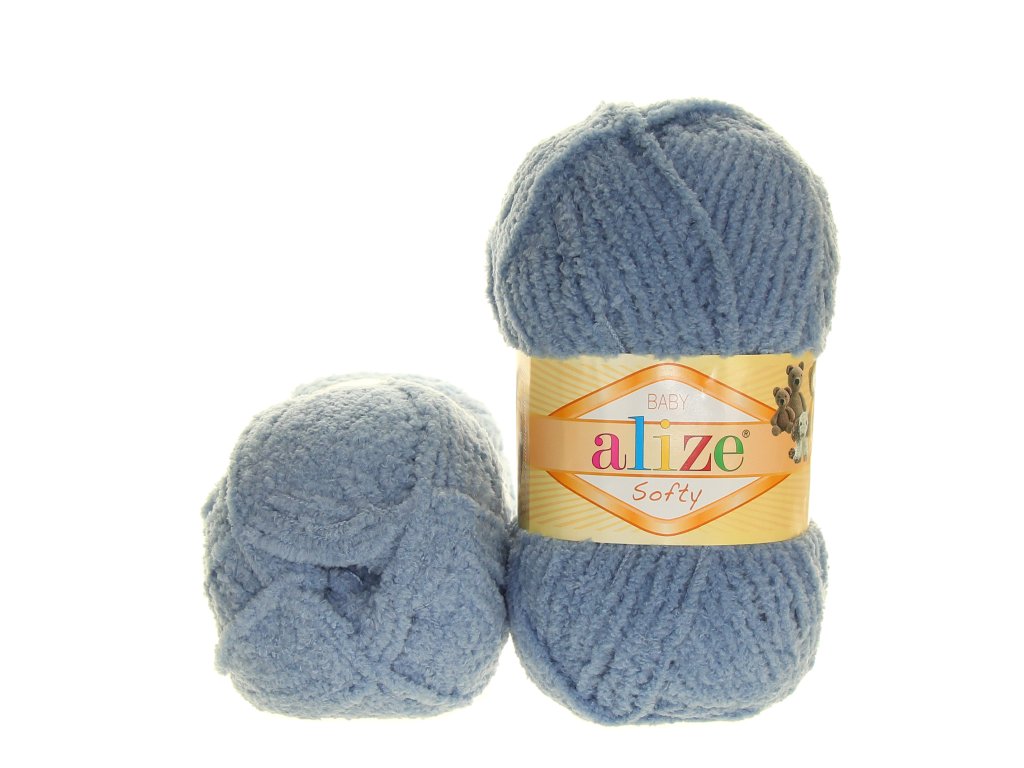Hebká dětská příze Alize Softy s chlupem vhodná na dětské čepicky, svetříky, deky nebo pletené či háčkované hračky a podobně. Jemností je srovnatelná s přízi Doplhin baby, pouze slabší. Klubíčko je s návinem 115 metrů. Váha 50g.
