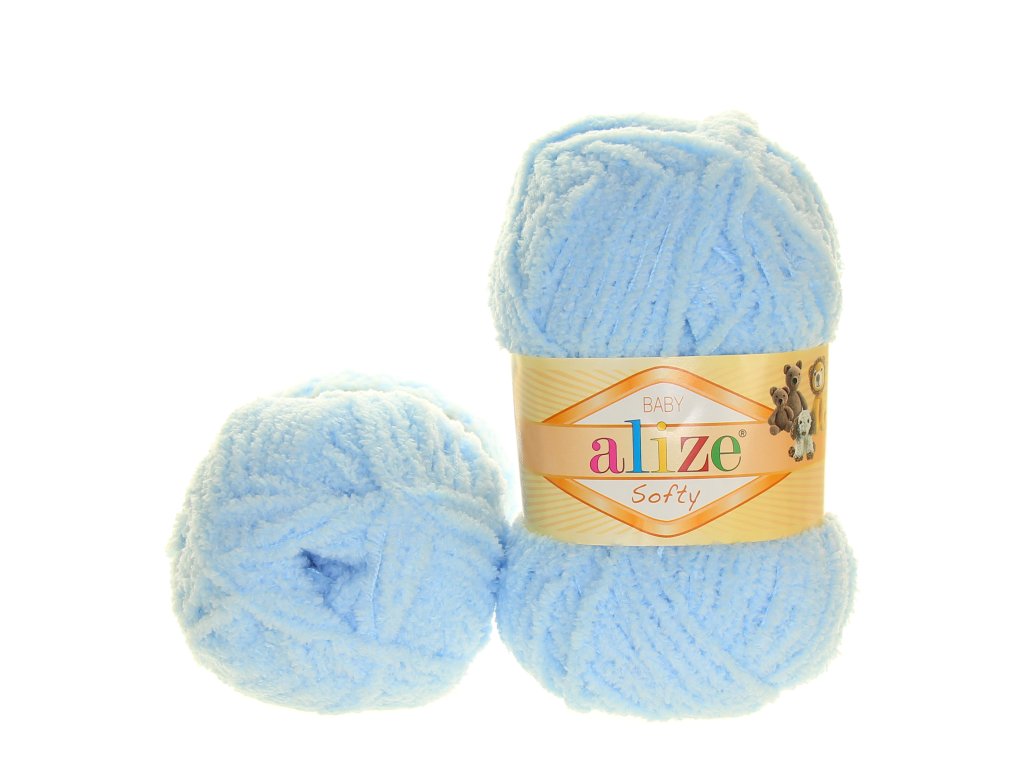 Hebká dětská příze Alize Softy s chlupem vhodná na dětské čepicky, svetříky, deky nebo pletené či háčkované hračky a podobně. Jemností je srovnatelná s přízi Doplhin baby, pouze slabší. Klubíčko je s návinem 115 metrů. Váha 50g.