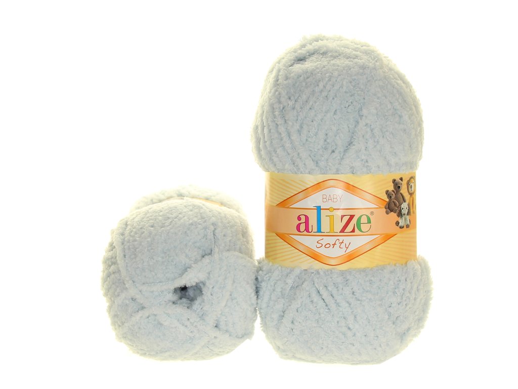 Hebká dětská příze Alize Softy s chlupem vhodná na dětské čepicky, svetříky, deky nebo pletené či háčkované hračky a podobně. Jemností je srovnatelná s přízi Doplhin baby, pouze slabší. Klubíčko je s návinem 115 metrů. Váha 50g.