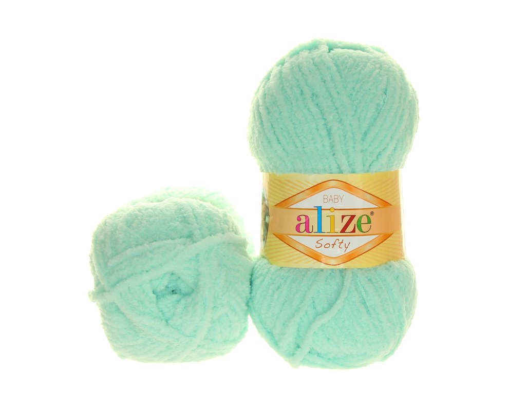 Hebká dětská příze Alize Softy s chlupem vhodná na dětské čepicky, svetříky, deky nebo pletené či háčkované hračky a podobně. Jemností je srovnatelná s přízi Doplhin baby, pouze slabší. Klubíčko je s návinem 115 metrů. Váha 50g.