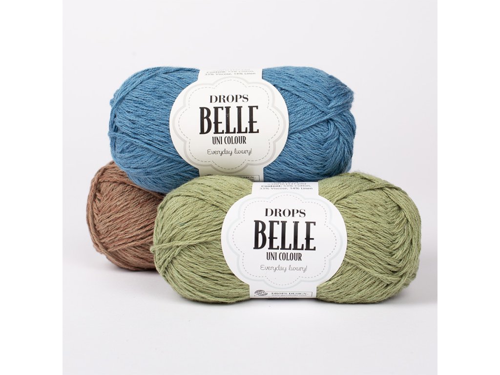 DROPS Belle je příze ze směsi bavlny, viskózy a lnu. Díky svému přírodnímu složení je měkká, savá a příjemná na pokožku. Má decentní lesk a krásně vypadá i v jednoduchých vzorech.