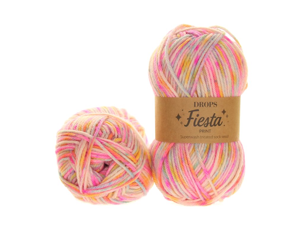 DROPS FIESTA nabízí zajímavou kolekci čtyř druhů. Vybrat si můžete z jednobarevných variant UNI COLOUR, melírovaných kombinací tónů PRINT. Long Print a Print nabízí naopak více barevná klubíčka, kde jsou různé délky odstínů.