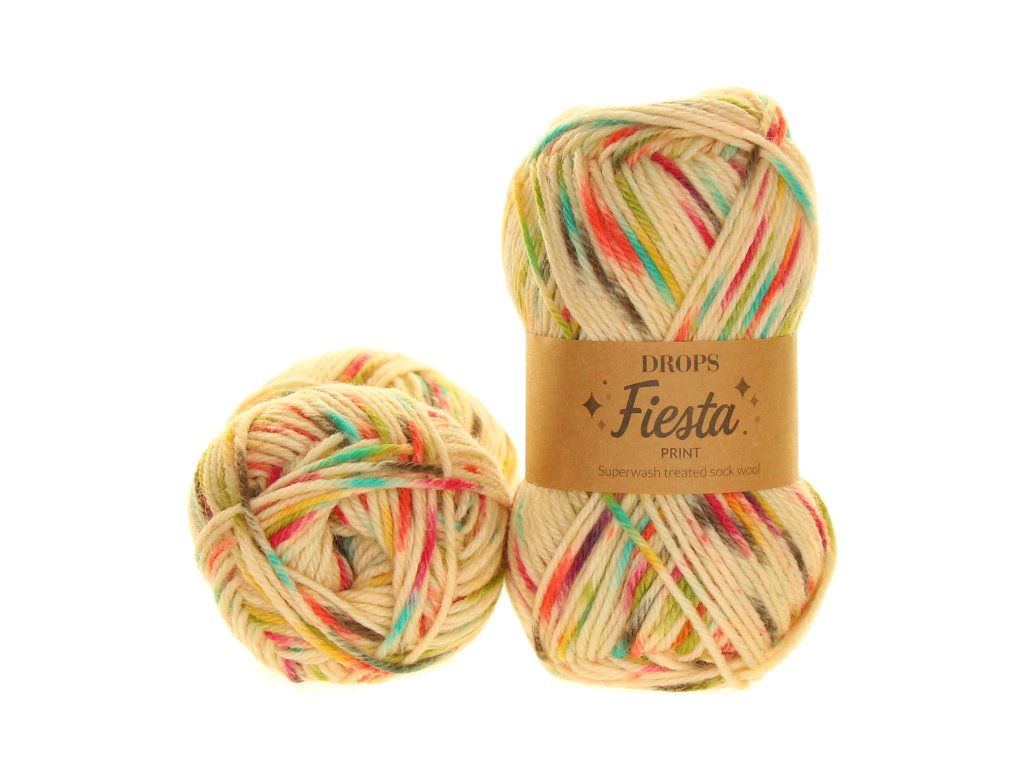 DROPS FIESTA je spolehlivá příze na pohodlné a hřejivé ponožky i barevné svetry plné fantazie.