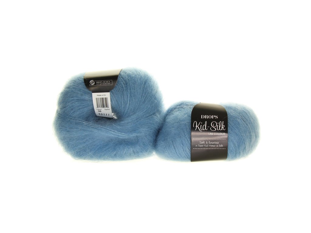 DROPS Kid-Silk nabízí luxusní dotek, výjimečnou měkkost a možnost kombinace s jinými přízemi pro vytvoření hebkého chloupku nebo výraznější textury. Výsledkem jsou jemné a stylové modely s nízkou hmotností a vysokou elegancí.