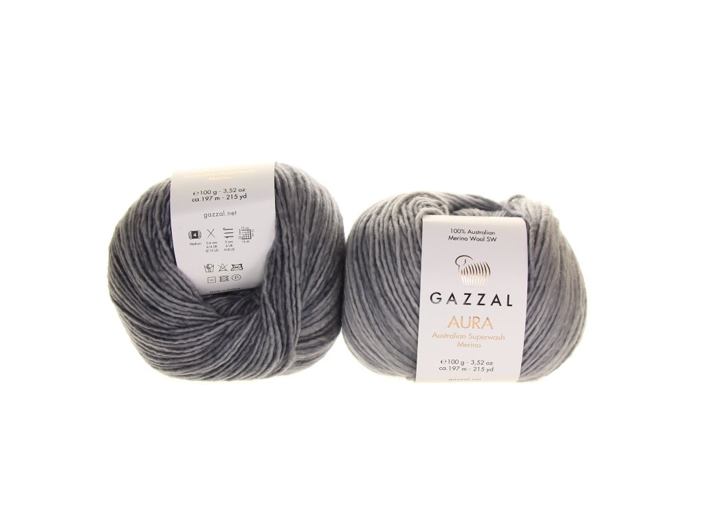 Gazzal Aura je příze ze 100% australského merina s úpravou Superwash, která spojuje přirozenou hebkost, teplo a nadýchanost s luxusním vzhledem ručního barvení. Je hebká na dotek, pružná a prodyšná – vhodná i pro citlivou pokožku.