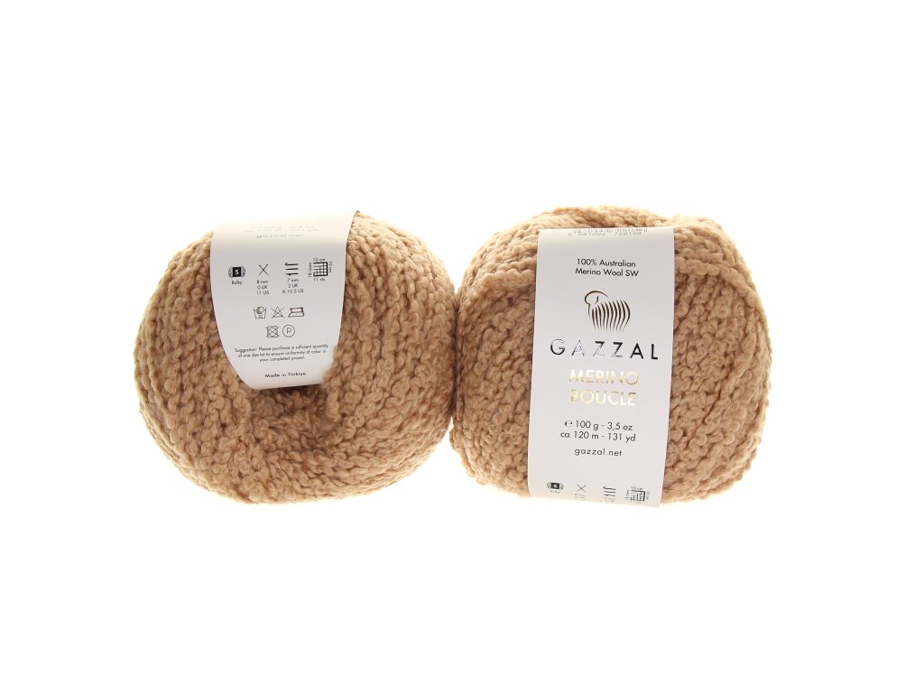 Gazzal Merino Bouclé je výjimečná příze vyrobená ze 100% australské merino vlny. Vlna z merino ovcí patří mezi nejjemnější přírodní vlákna – je měkká, hřejivá, prodyšná a příjemná i pro citlivou pokožku. Díky úpravě Superwash se snadno udržuje a lze ji prát v pračce bez obav ze sražení či ztráty tvaru.