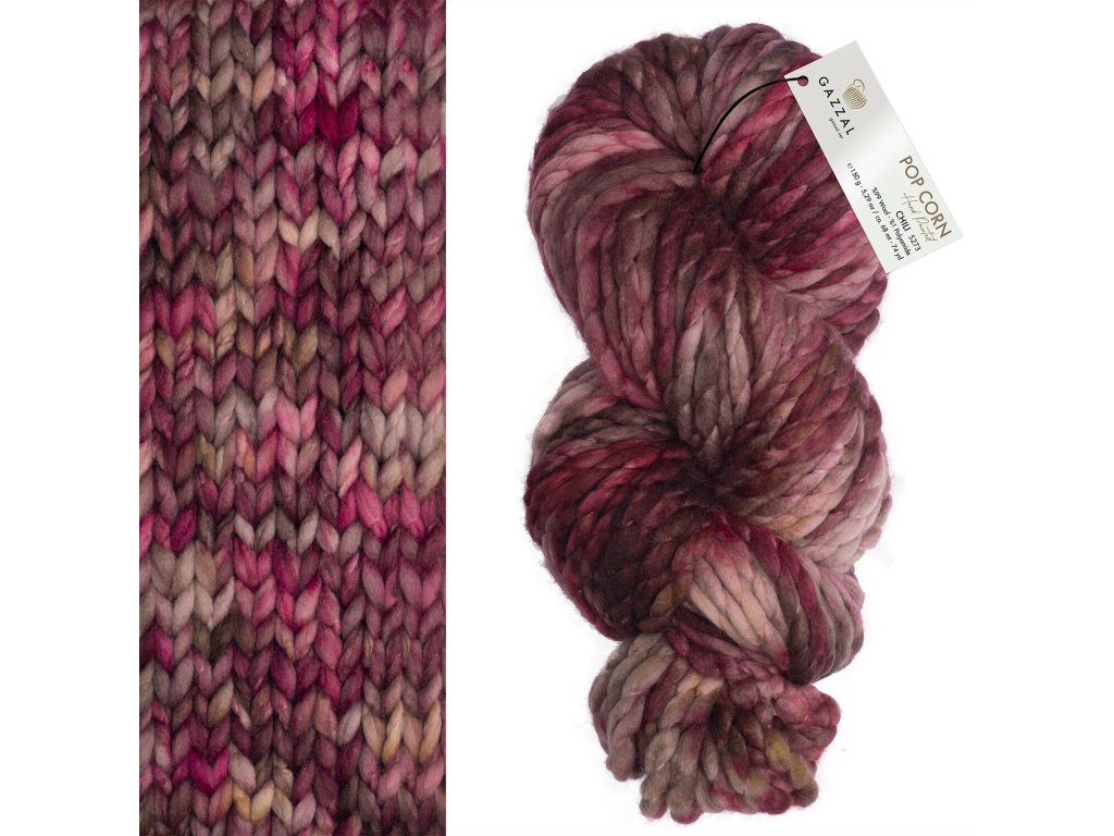 Příze Gazzal Pop Corn je originální a výrazná příze s typickou popcornovou strukturou, která vytváří zajímavý plastický efekt v úpletu. Díky vysokému podílu vlny je příze příjemně hřejivá, měkká a ideální především pro zimní projekty. Silnější struktura umožňuje rychlé pletení a výsledné výrobky mají moderní a velmi zajímavý vzhled.