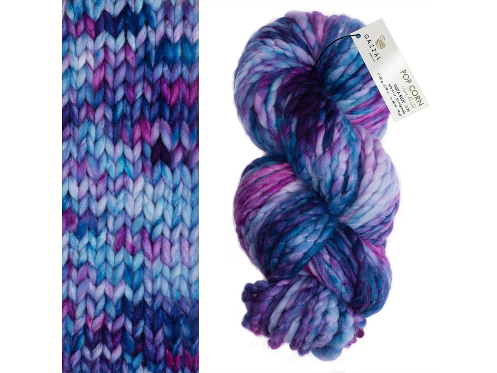 Příze Gazzal Pop Corn je originální a výrazná příze s typickou popcornovou strukturou, která vytváří zajímavý plastický efekt v úpletu. Díky vysokému podílu vlny je příze příjemně hřejivá, měkká a ideální především pro zimní projekty. Silnější struktura umožňuje rychlé pletení a výsledné výrobky mají moderní a velmi zajímavý vzhled.