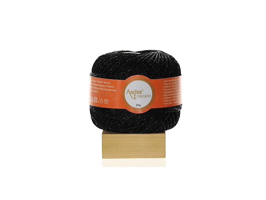 Anchor Metallic černá 342, je jemně působící třpytivá tenká příze.