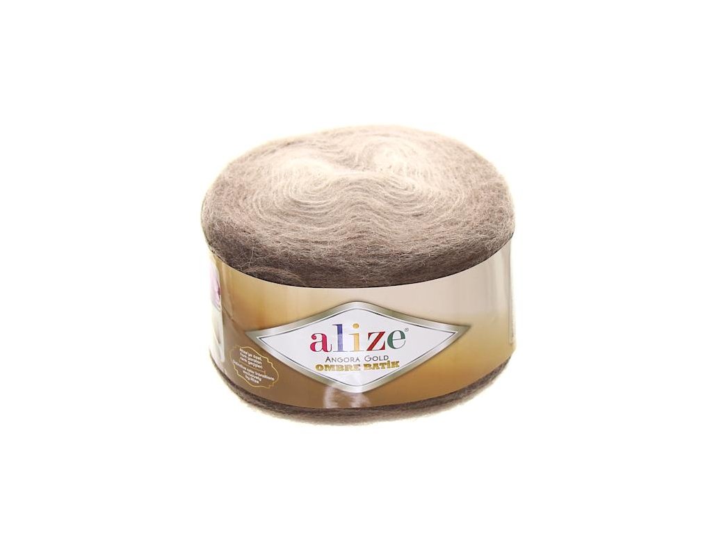 Pletací příze Alize Angora Gold Ombre Batik 8103 hnědá s pozvolným barevným přechodem a delším chloupkem, je vhodná na šátky, šály, jarní svetry, kardigany nebo ponča.