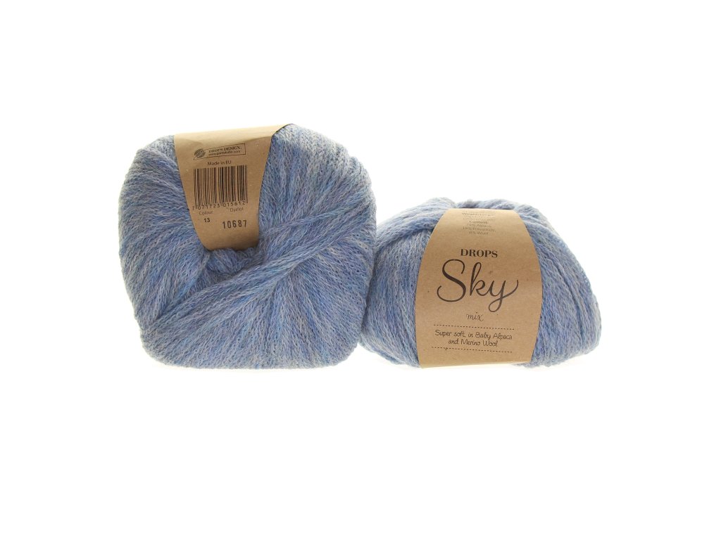 Patří do skupiny B, ale díky dlouhému návinu stačí méně klubek i na větší modely. DROPS Sky je také vhodná pro plstění, a tak ji ocení i tvůrci přírodních projektů bez superwash úprav.