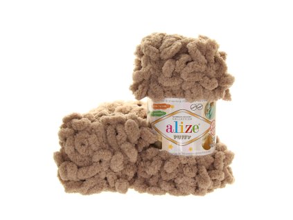 Hebká žinylková příze s předpřipravenými většími očky, která umožňuje pletení bez použití jehlic či háčku – postačí vám pouze ruce.